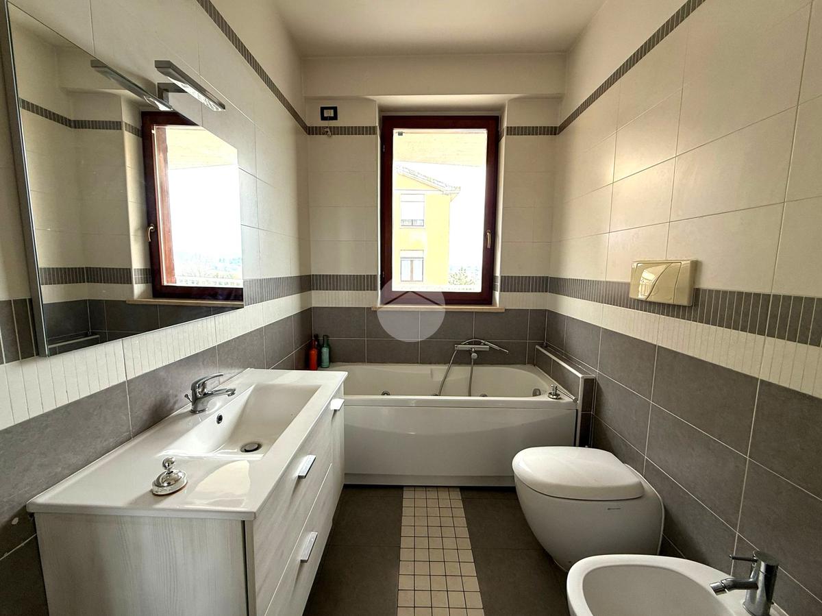 La zona notte ospita una camera matrimoniale ed una media e due bagni: uno dotato di box doccia e l’altro di vasca.