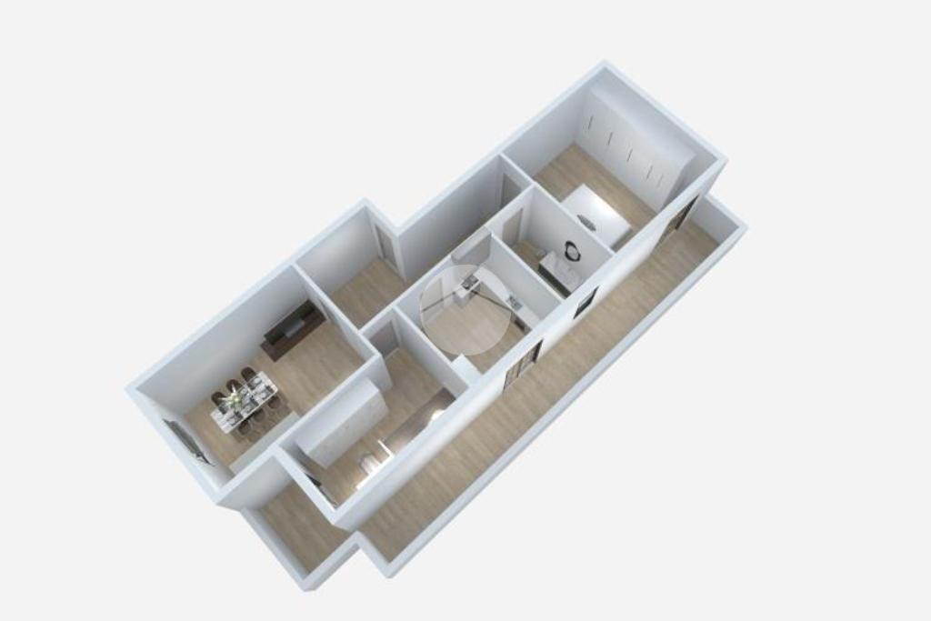 L'immobile è così composto: ingresso, soggiorno con finestra, cucinotto con accesso al balcone, due camere di cui una matrimoniale con porta-finestra e una singola con accesso ad un piccolo balcone ed un bagno servito di vasca e finestra.